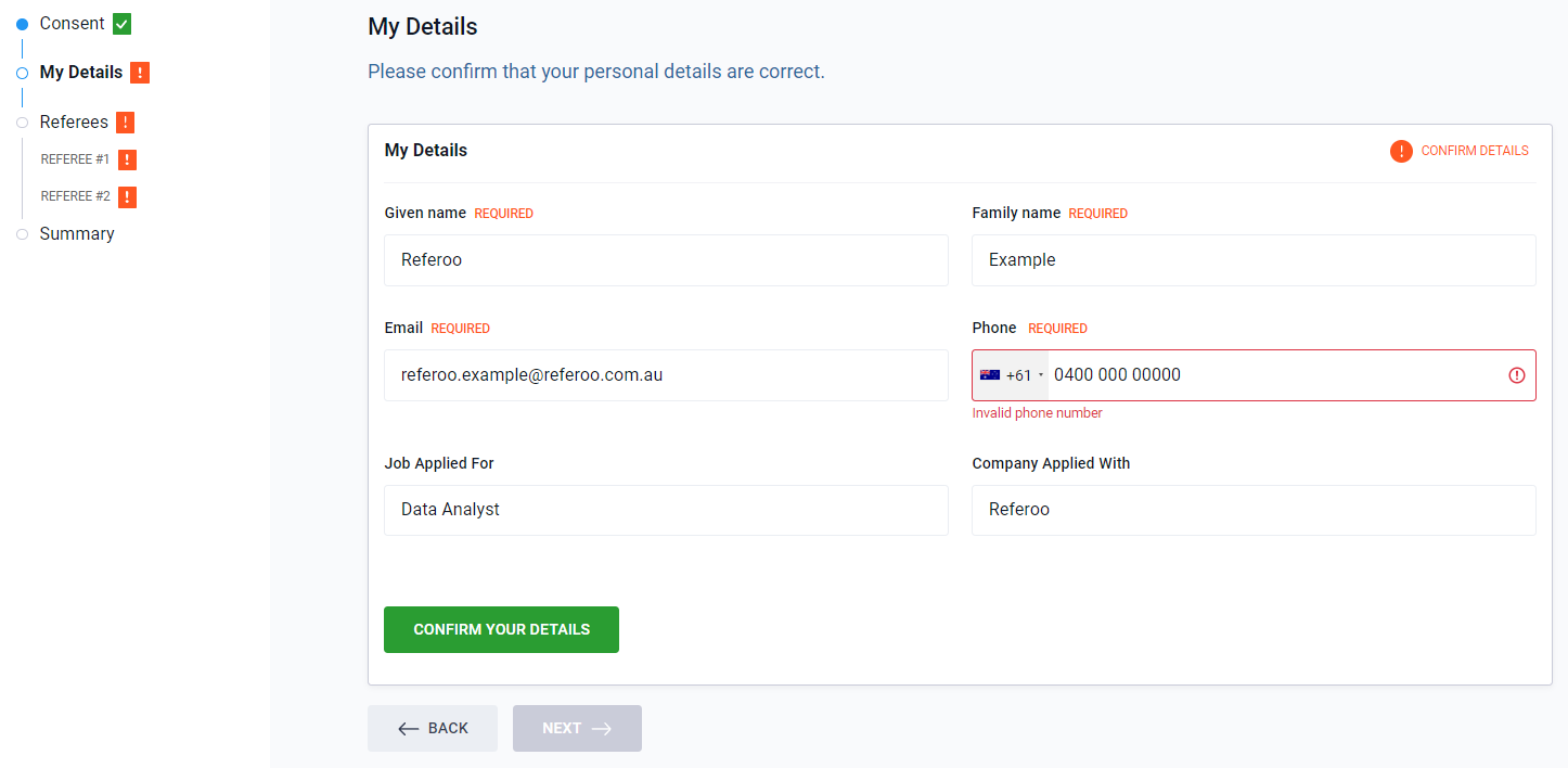 Referoo will notify your recruiter/hiring manager that you have entered the details for your referees