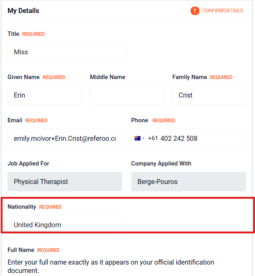 A:Click the link in the email or SMS sent to you by Referoo. This will take you to your Candidate Dashboard, where you can begin entering your details and track your progress.