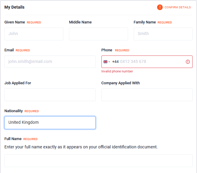 This part includes a few extra fields compared to the My Details section, so take a moment to make sure everything is filled in correctly.